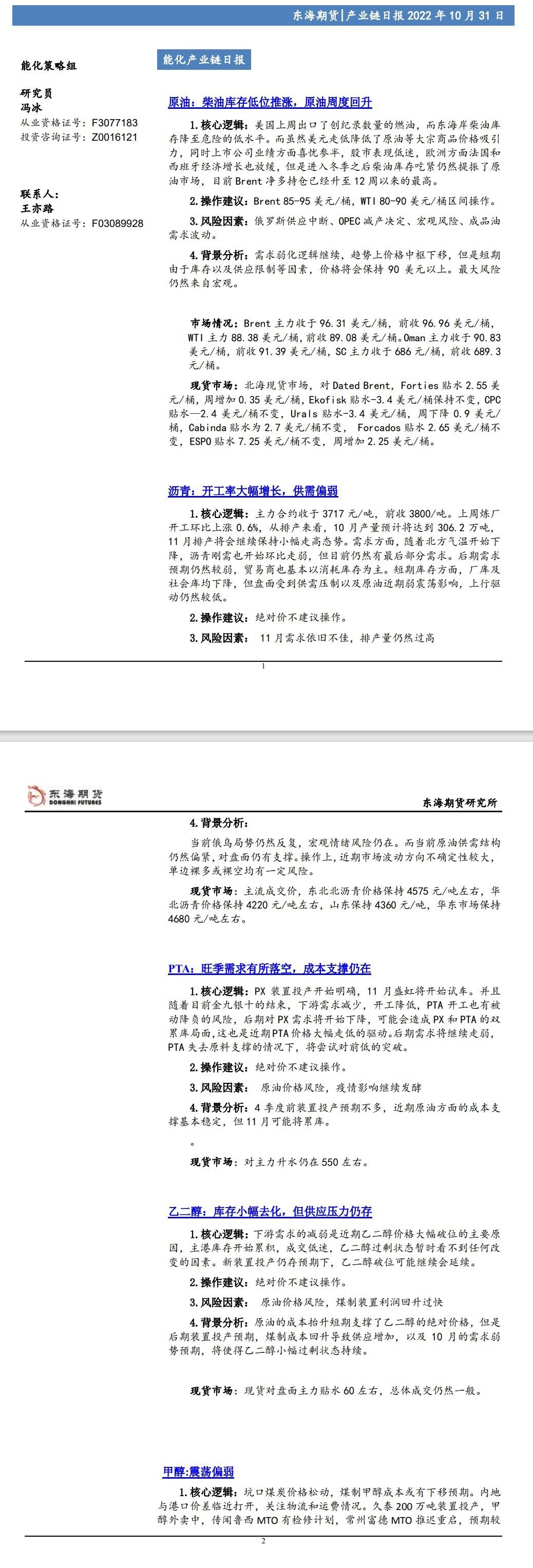 标题:【东海期货10月31日产业链日报】能化篇:柴油库存低位推涨,原油周度回升