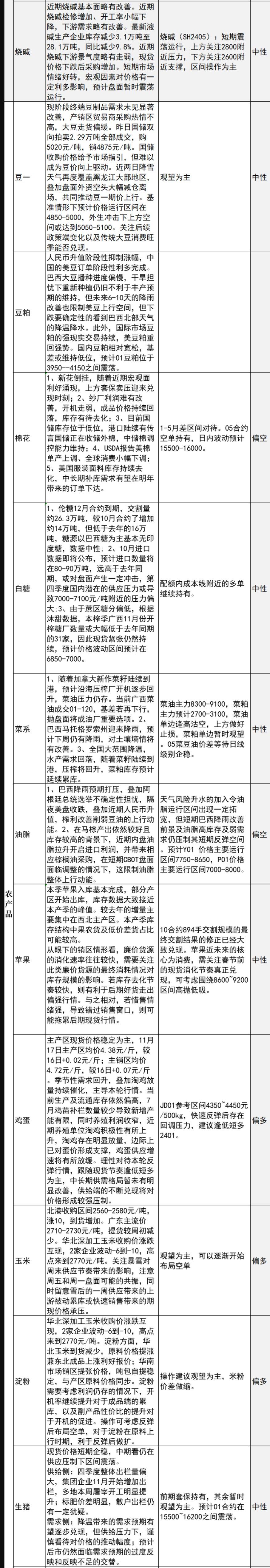 以下为中信建投期货11月17日对股指、国债、贵金属、能源化工、黑色建材、煤炭、有色金属、农产品期货交易提醒和建议。