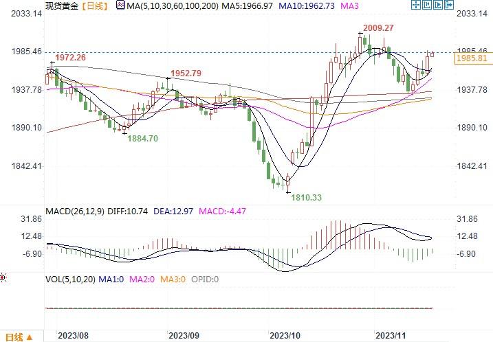 现货黄金 报 1985.61 美元/盎司。