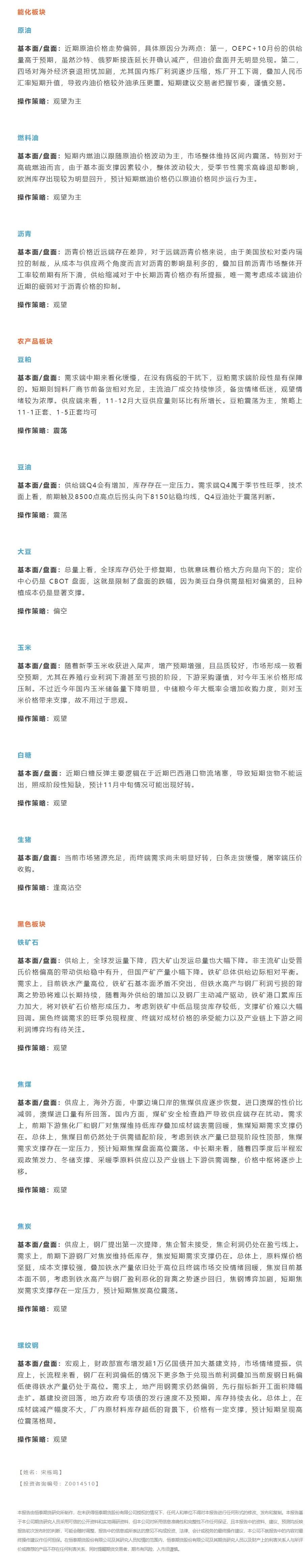 以下为恒泰期货11月17日对能源化工、黑色板块、有色金属、农产品期货交易提醒和建议。