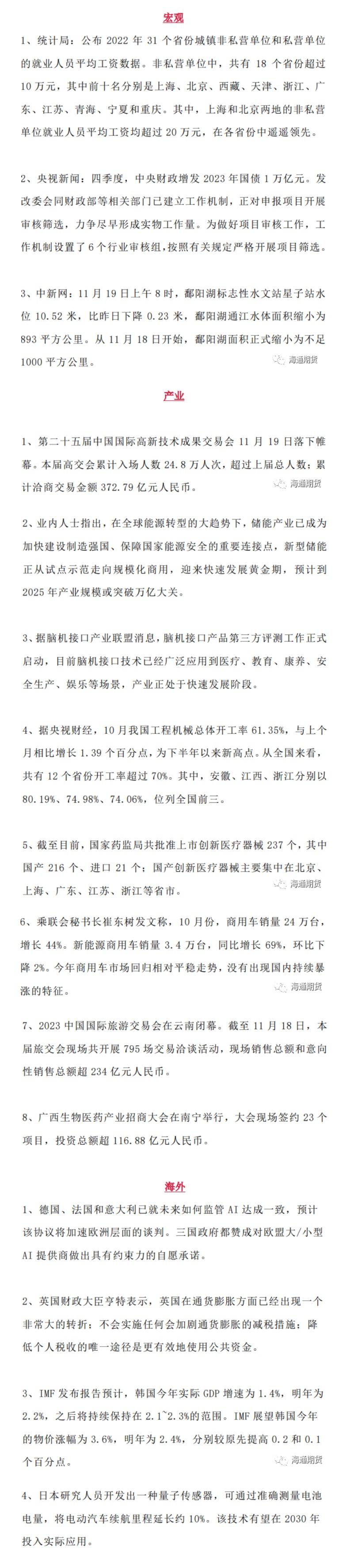 标题:海通期货11月20日交易内参