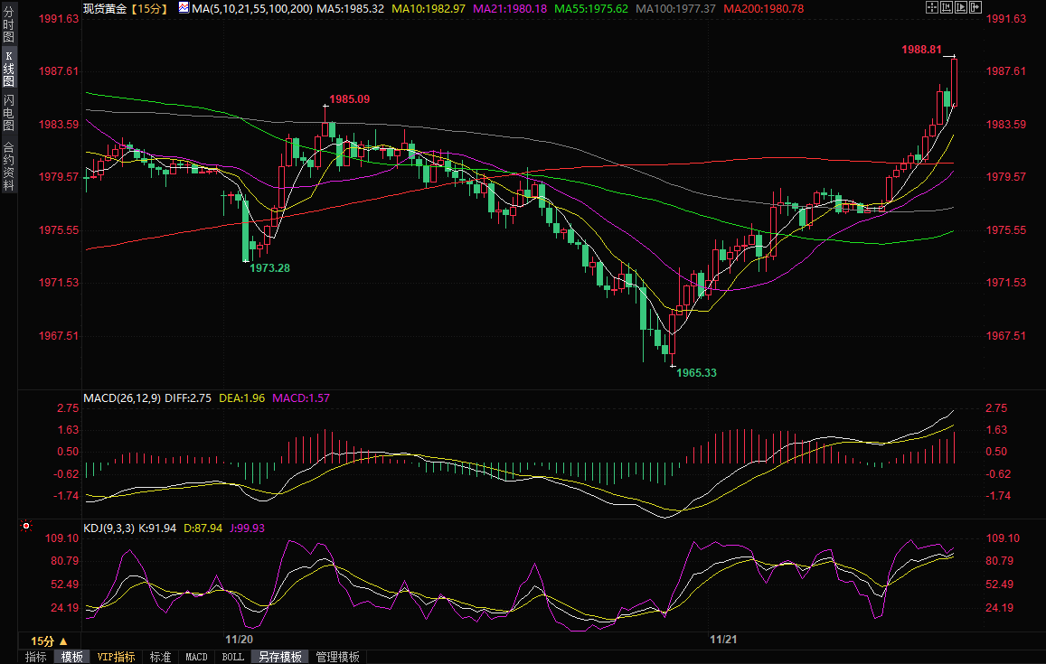 汇通财经APP讯——周二(11月21日)亚市早盘,现货黄金短线突然急涨约10美元,金价刚刚突破1988美元/盎司,刷新两日高位,上周五触及的近两周高点阻力在1993.31美元/盎司附近。FXStreet分析师Matías Salord最新撰文,对黄金技术前景进行分析。