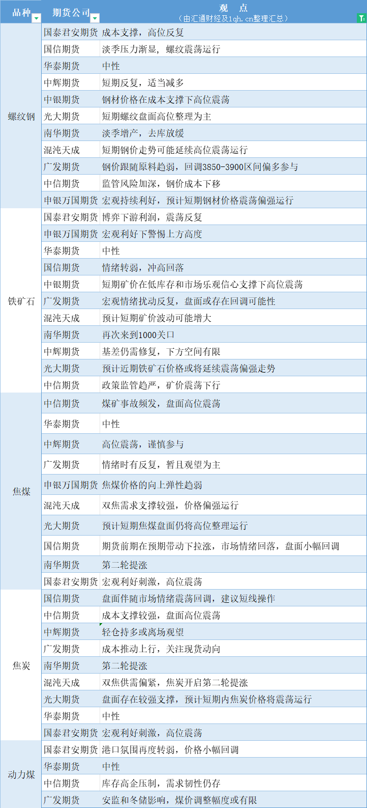 期货公司观点汇总一张图:11月23日黑色系(螺纹钢、焦煤、焦炭、铁矿石、动力煤等)