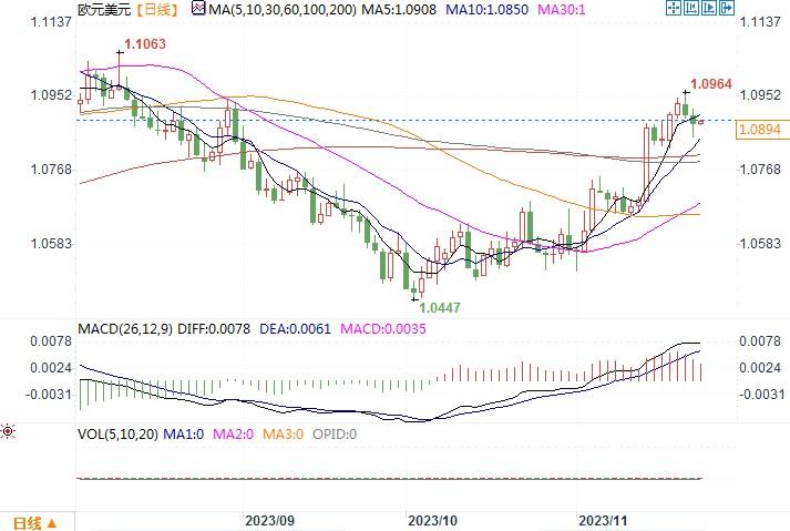 汇通财经APP讯——周四(11月23日)亚洲早盘,欧元兑美元保持温和下跌。投资者将密切关注定于周四晚些时候发布的欧元区PMI数据。欧元区制造业PMI料升至43.4,服务业PMI料升至48.1,综合PMI料升至46.8。周四美国感恩节假期之前,市场保持平静。该货币对目前在1.0888附近交易,当天上涨0.01%。