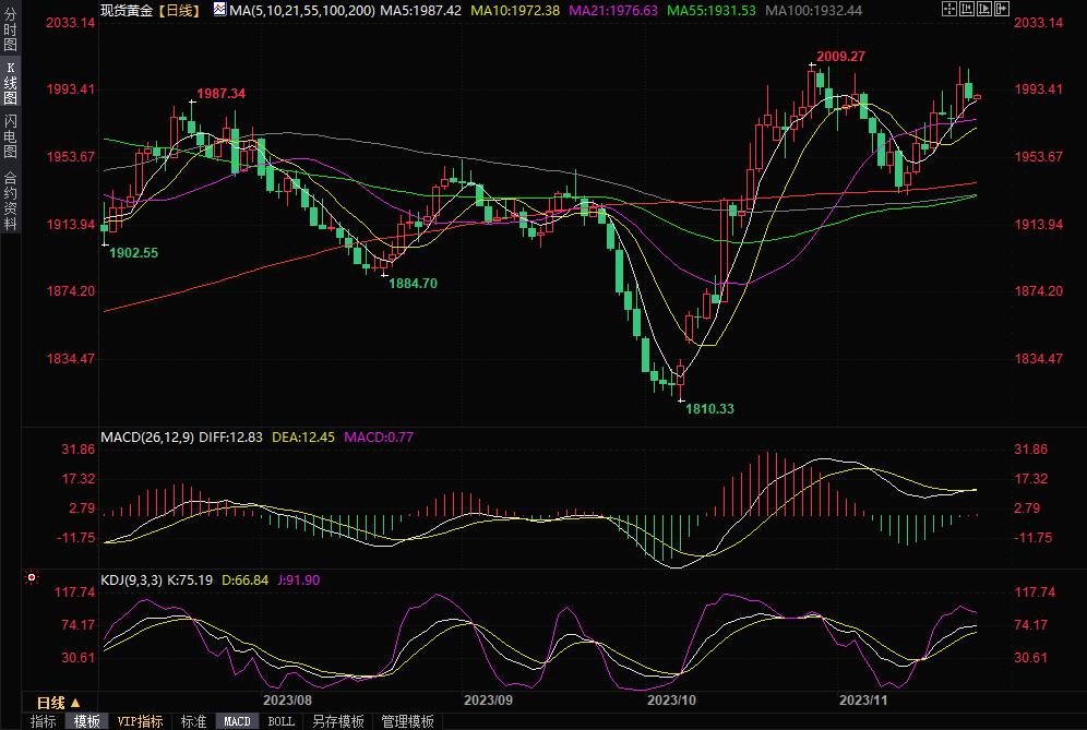 尽管金价回落至1990美元/盎司以下、接近10日均线,并面临2000美元/盎司的阻力,但仍有上升潜力。