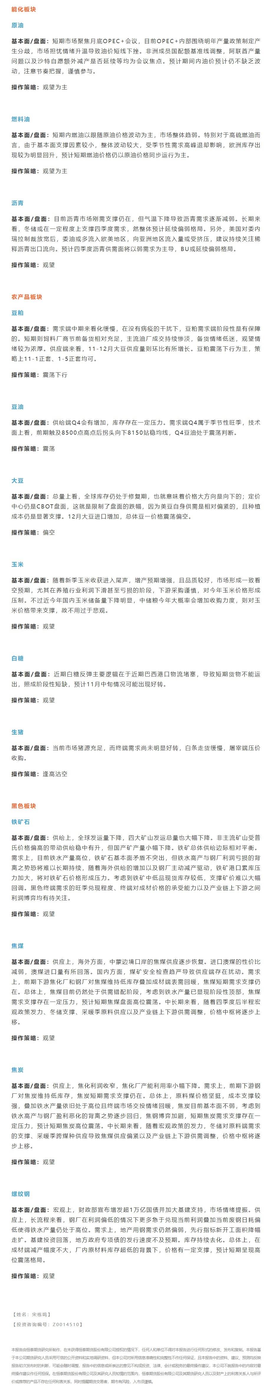 以下为恒泰期货11月24日对能源板块、黑色板块、农产品板块期货交易提醒和建议。