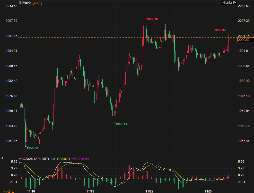 现货黄金报1999.41美元/盎司,日内涨幅0.34%。