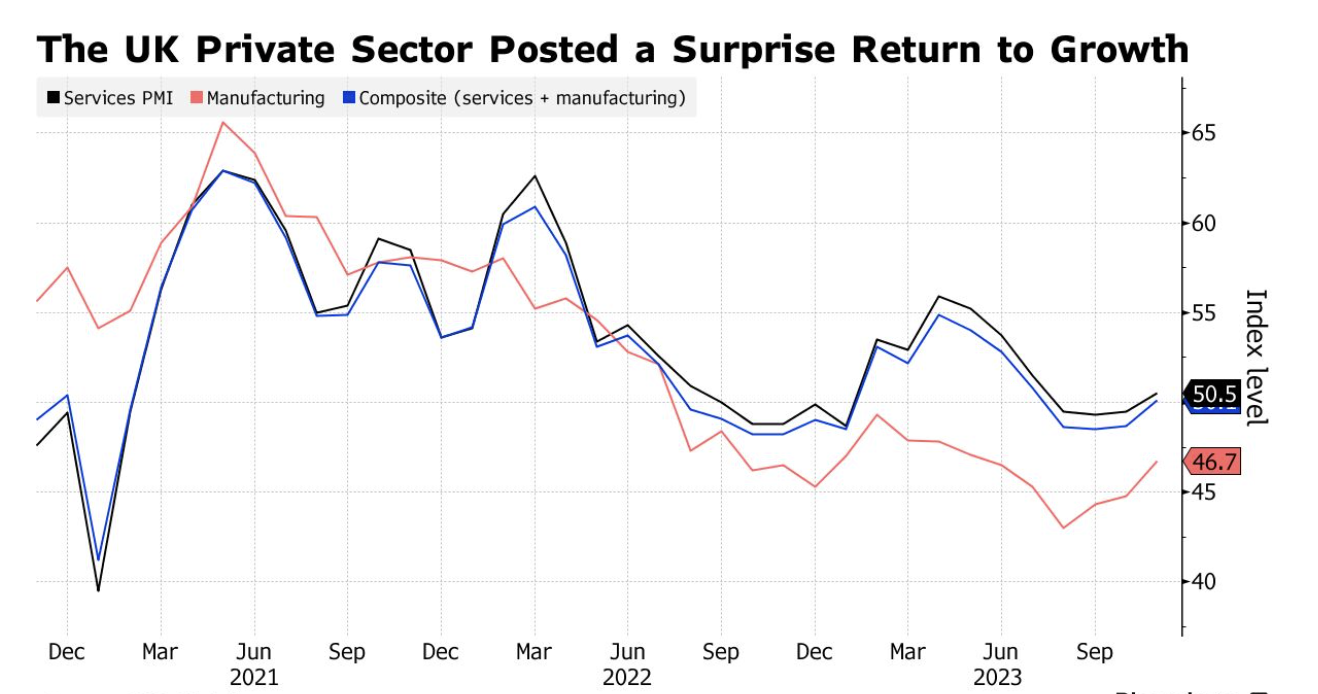 英国财政大臣杰里米·亨特(Jeremy Hunt)在秋季声明中宣布了自 20 世纪 80 年代以来最大规模的降息计划,而且一项重要调查显示,随着价格压力的加大,11 月份私营部门意外恢复增长,之后,8 月份降息的预期本周有所减弱。