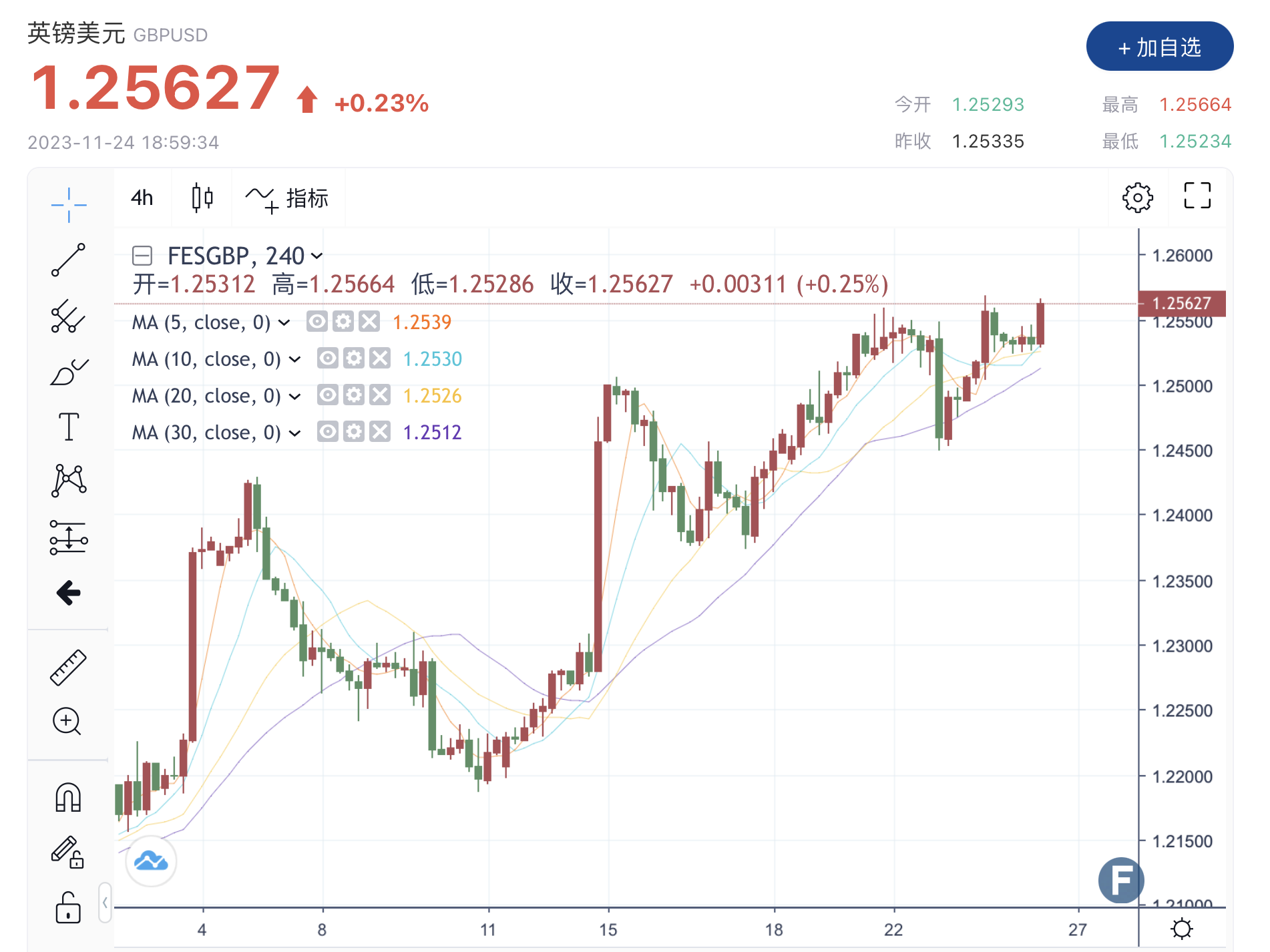 今日对于英镑/美元的预期趋势为看涨。