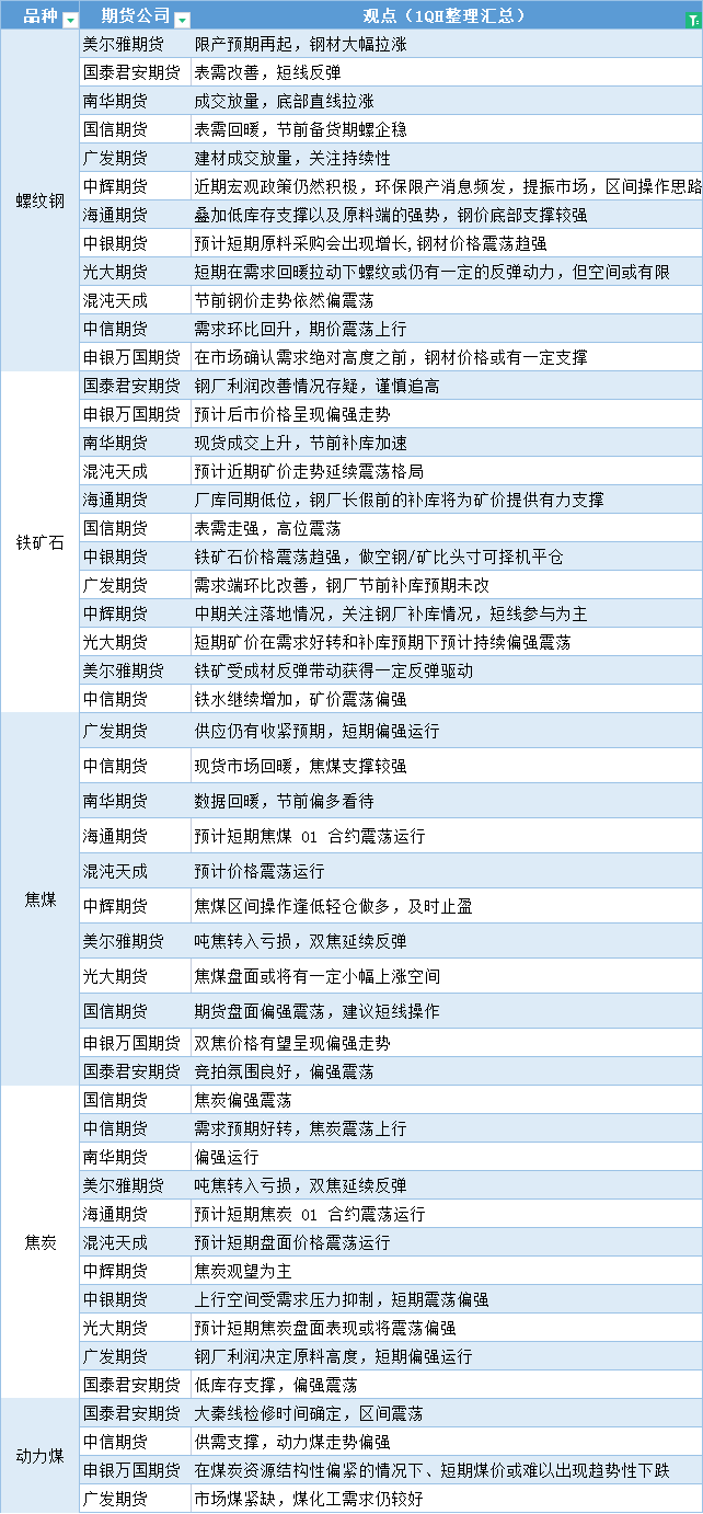 期货公司观点汇总一张图:9月23日黑色系(螺纹钢、焦煤、焦炭、铁矿石、动力煤等)
