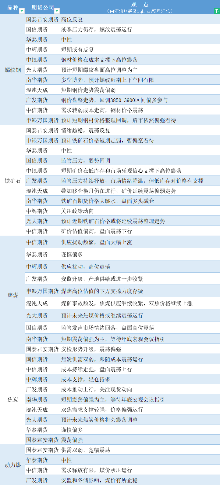 标题:期货公司观点汇总一张图:11月29日黑色系(螺纹钢、焦煤、焦炭、铁矿石、动力煤等)