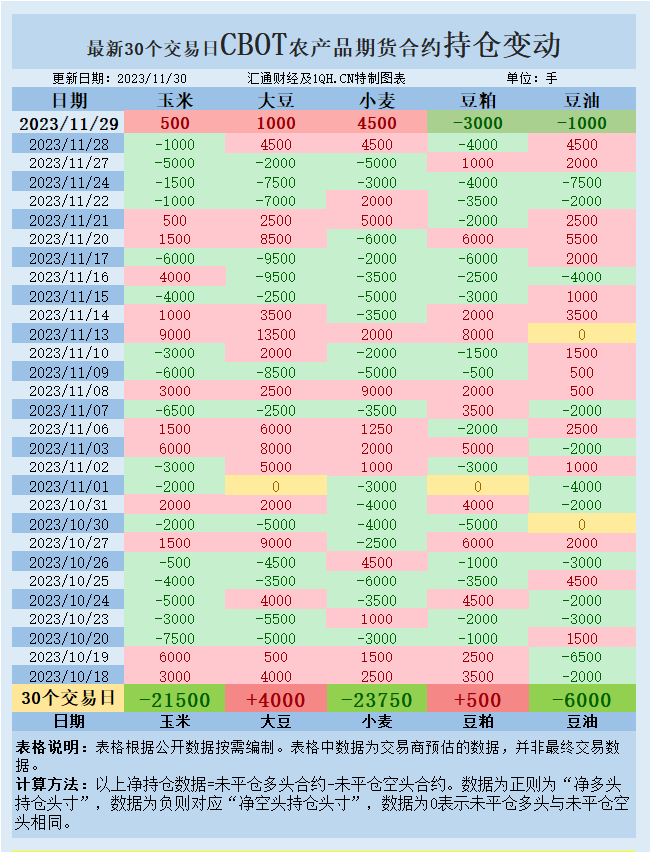 CBOT持仓变动情况