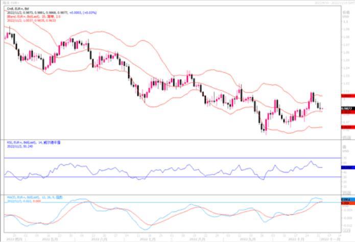 在美联储利率决议前,市场对美联储加息预期的变化继续主导市场走向。11月的加息75个基点基本已被市场预期是板上钉钉,关键随后12月份的加息行动上。美联储在9月发布的利率“点阵图”预测中已经预计,美联储将在12月放缓加息至50个基点,随后在2023年初仅加息25个基点。市场正在期待政策改变的信号,许多人认为鲍威尔将利用他的新闻发布会暗示加息速度确实在放缓,但估计仍旧会拿经济数据说事。技术图形上,日图下行逼近MA20,随机指标倾向进一步走低,暂时保持震荡偏弱。4小时图继续受MA5/10死叉打压,仍偏弱势,下方关注9月低点以来潜在的上升趋势线支持。小时图跌势在0.9900下方有所放缓,但仍缺乏上行动能。整体上