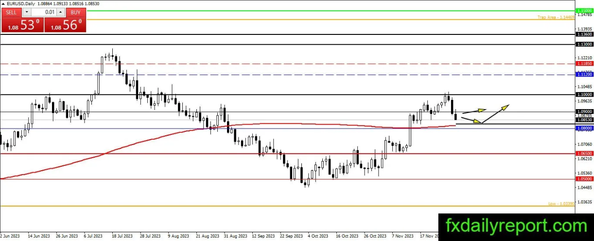 欧元/美元跌破1.0900,目前将尝试继续走弱至200日移动平均线和1.0800。交易者可以等待这两个点位的看涨反应,以获得建立多头头寸的机会。从长期来看,趋势仍然看涨,因此交易者应该避免空头头寸。