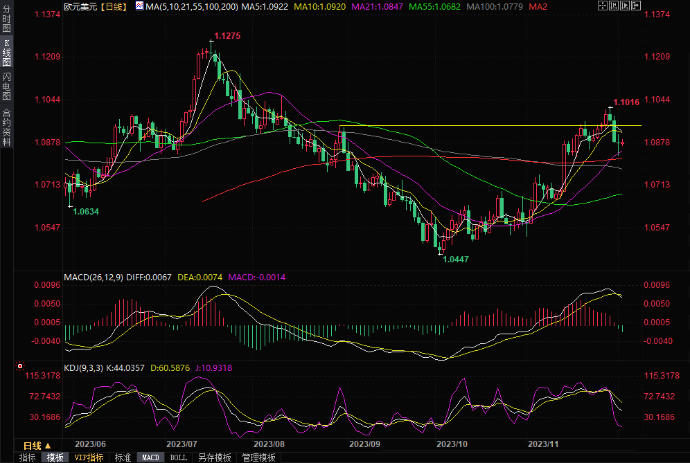 欧元兑美元一个明确的方向。