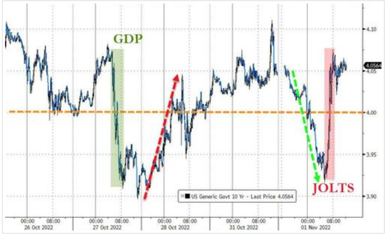 10年期美债收益率则脱离日内低位,重回4%关口上方: