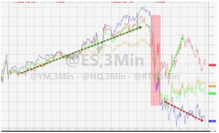 在周二上述职位空缺数据发布后,其实立刻就对金融市场造成了比较大的行情冲击。美股期货在盘中迅速跳水: