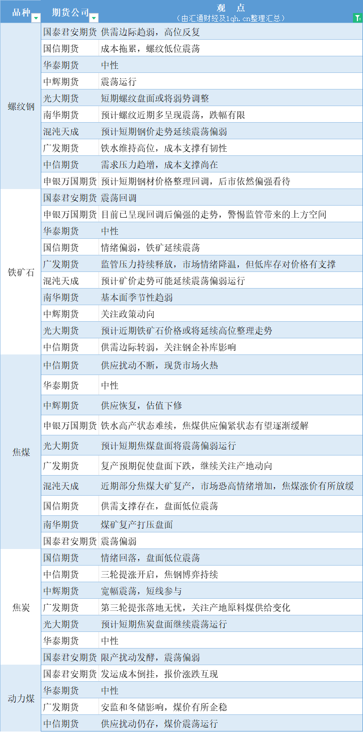 标题:期货公司观点汇总一张图:12月5日黑色系(螺纹钢、焦煤、焦炭、铁矿石、动力煤等)