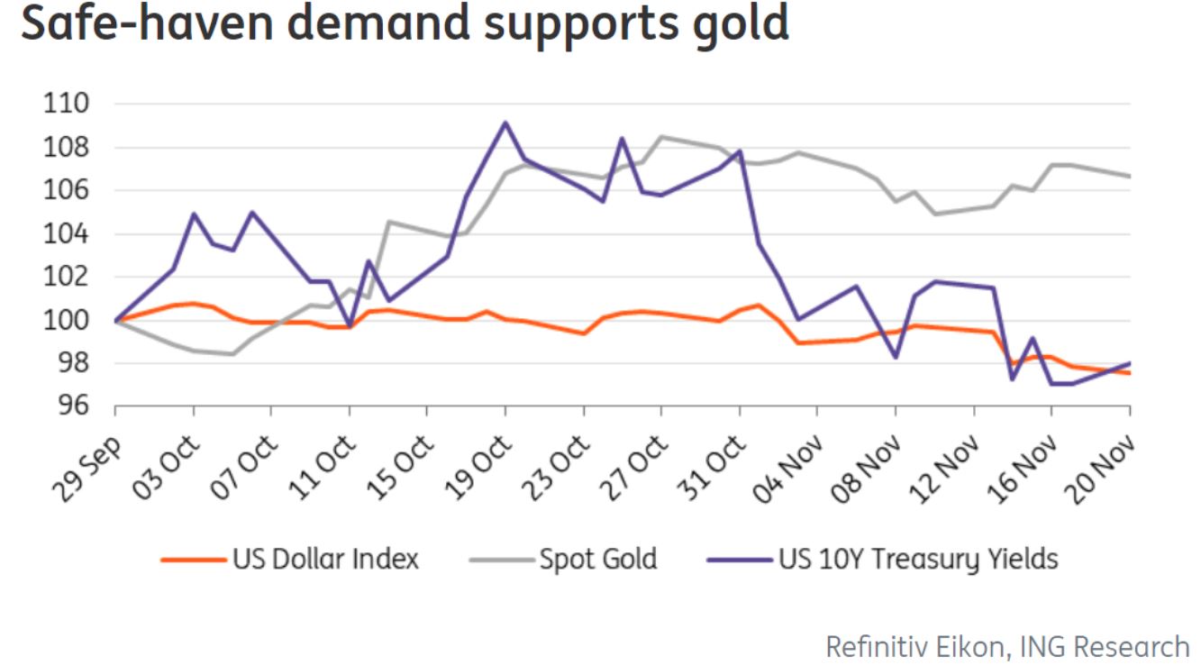 Manthey在周一(12月5日)撰写的一篇文章中表示:“由于对避险资产需求的增加以及对美联储明年将降息的预期,黄金在年底迎来了一波上涨。”