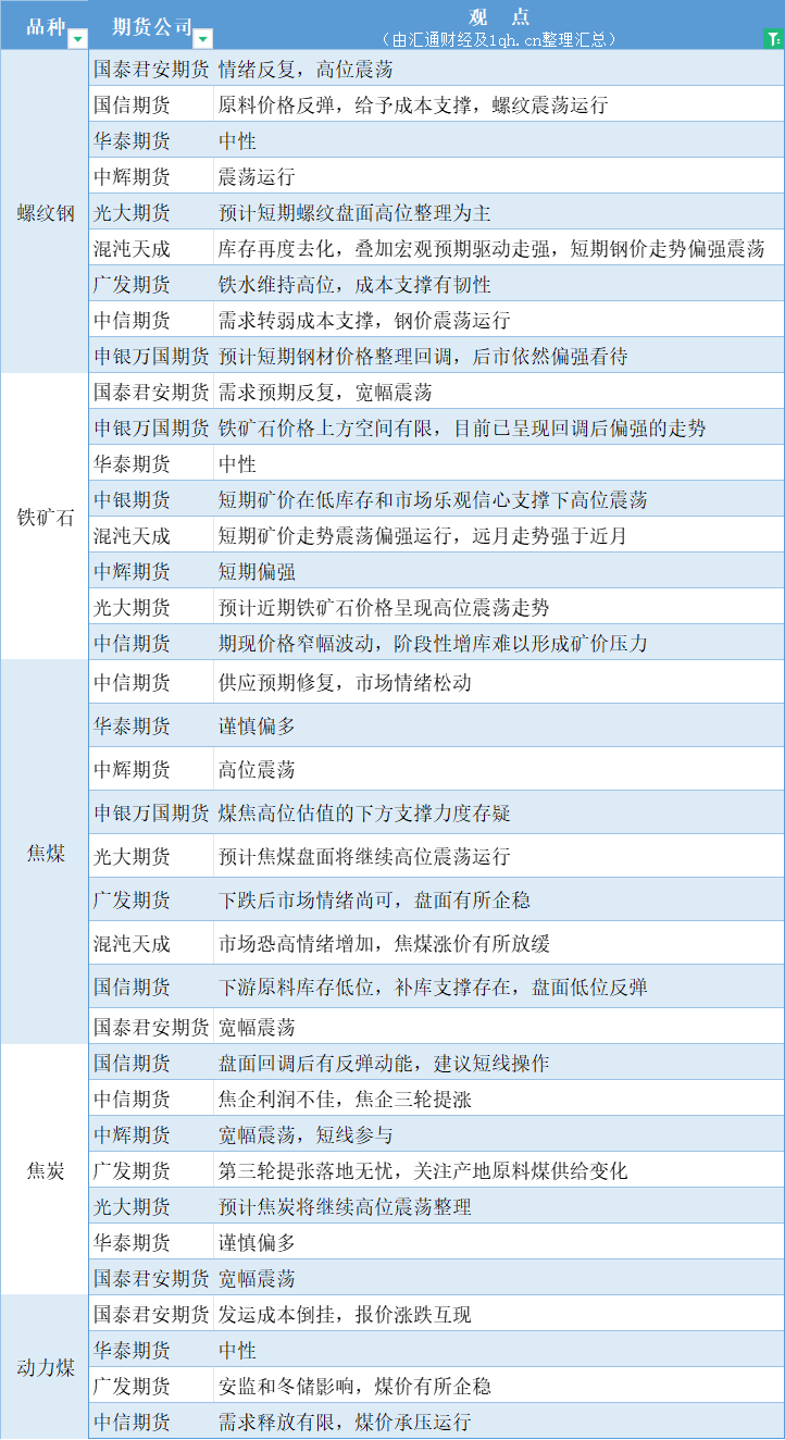 期货公司观点汇总一张图:12月7日黑色系(螺纹钢、焦煤、焦炭、铁矿石、动力煤等)