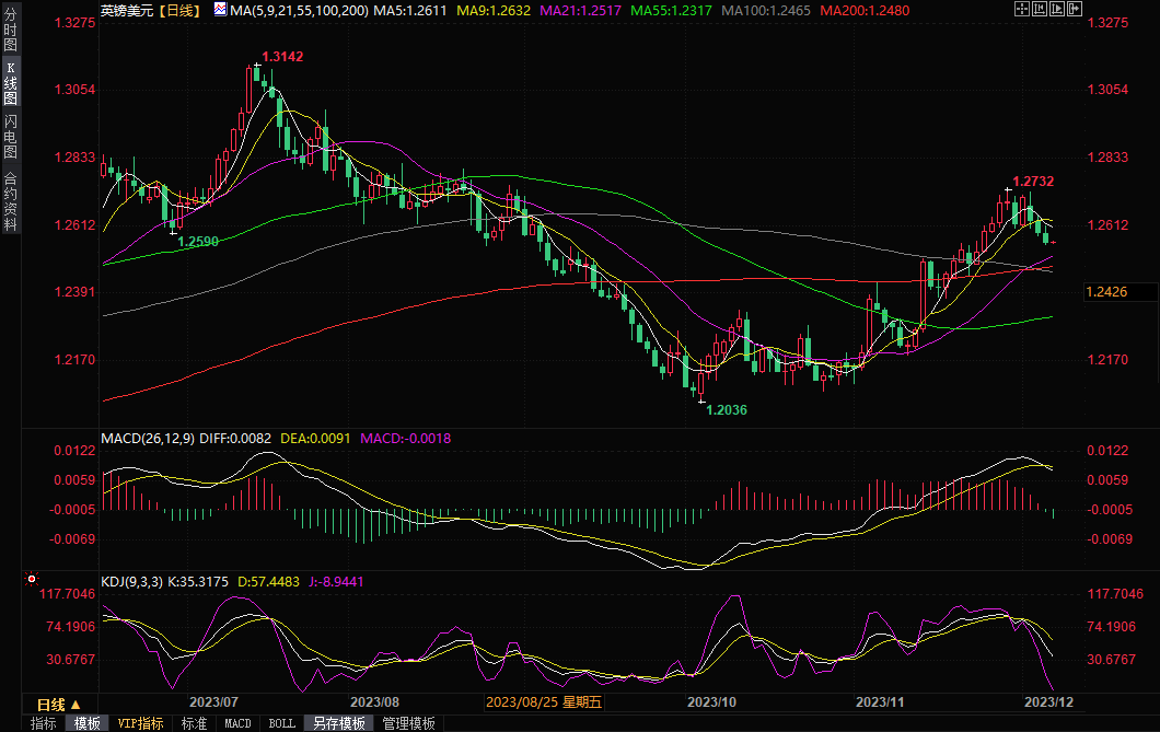 支撑位:1.2625、1.2200、1.2100、1.2000