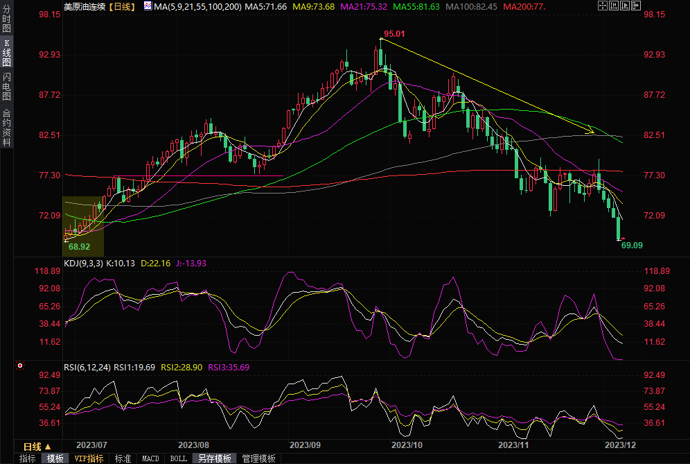 WTI 1月原油期货周三收跌2.94美元,跌幅4.07%,收报69.38美元/桶。截至发稿,WTI期货现报69.29美元/桶,跌幅4.19%。