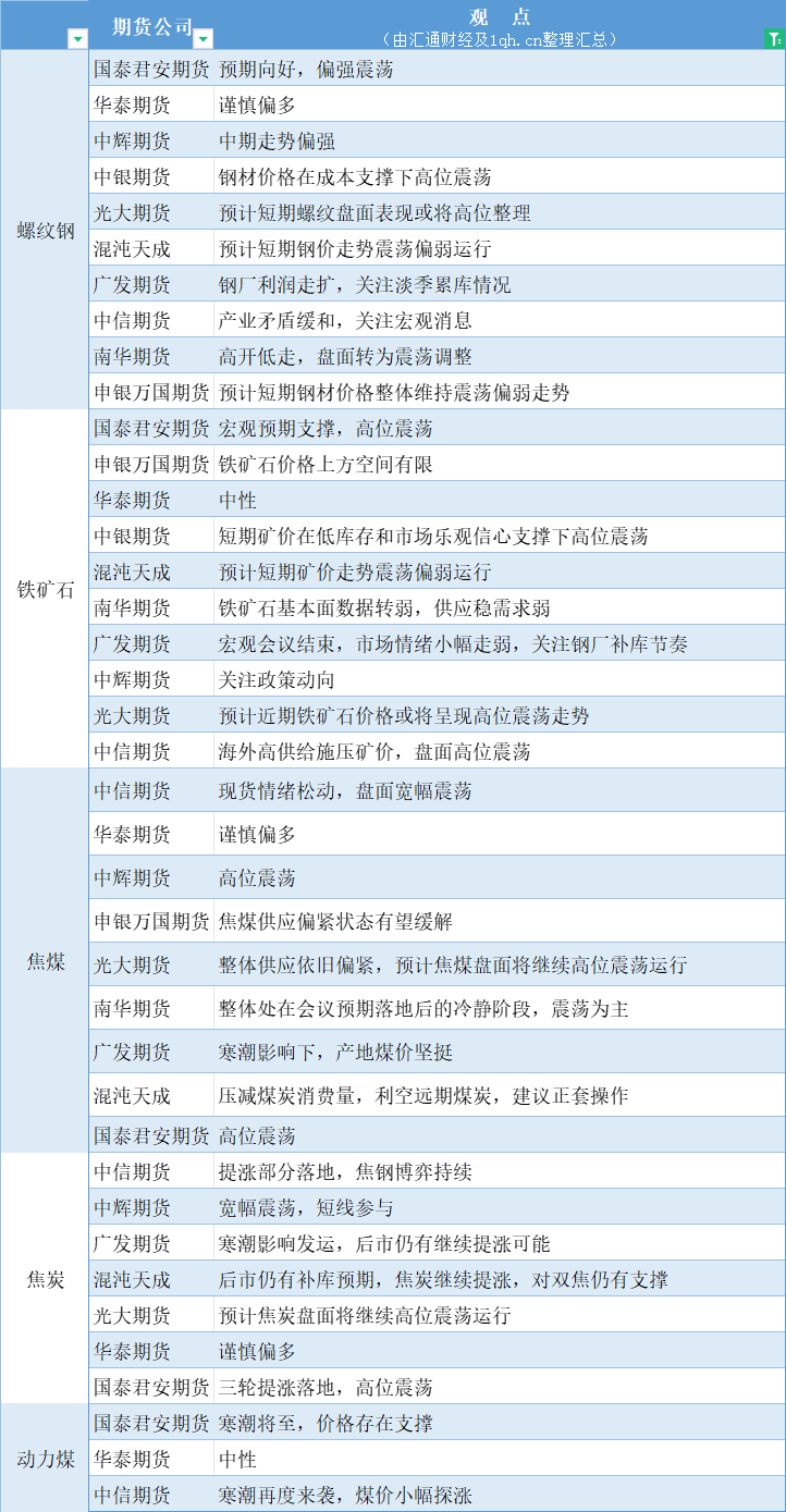 期货公司观点汇总一张图:12月13日黑色系(螺纹钢、焦煤、焦炭、铁矿石、动力煤等)