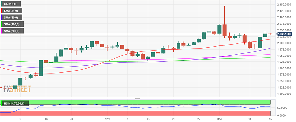 汇通财经APP讯——周五(12月15日)欧市盘中,现货黄金短线突然急涨,金价正逼近2045美元/盎司。FXStreet分析师Dhwani Mehta周五最新撰文,对金价技术前景进行分析。