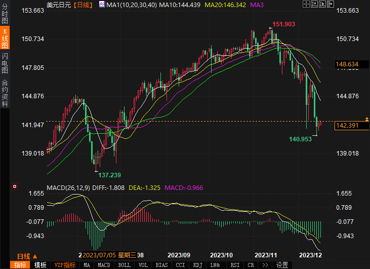 美元兑日元交投于142.41附近,上周美元走低,兑日元录得约2%的跌幅。