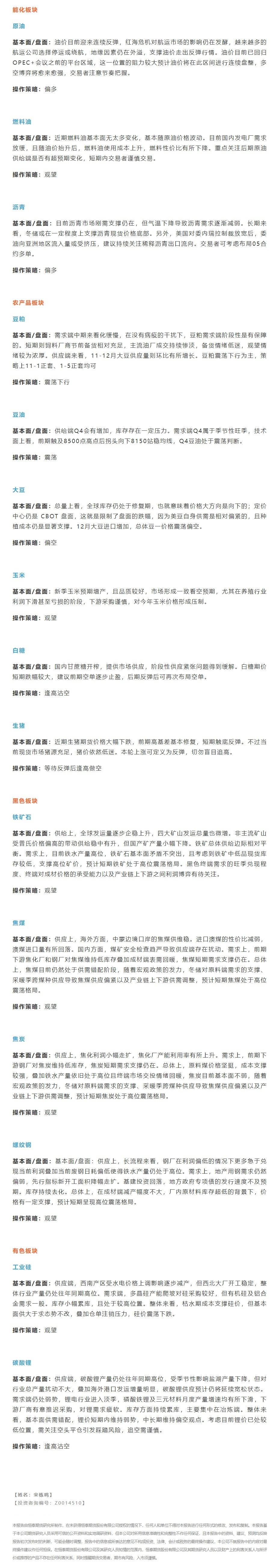 以下为恒泰期货12月20日对能源板块、黑色板块、农产品板块期货交易提醒和建议。