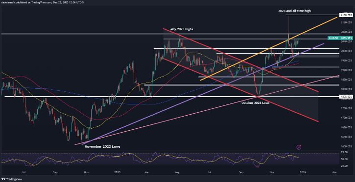 另一方面,如果买家开始退出且价格开始下跌,最初的支撑位将出现在2,050美元,随后是2,010美元。维持最后的底线对于多头来说至关重要。如果失败,可能会重振看跌势头,为跌向1,990美元创造条件。低于该区域,焦点可能是1,975美元。