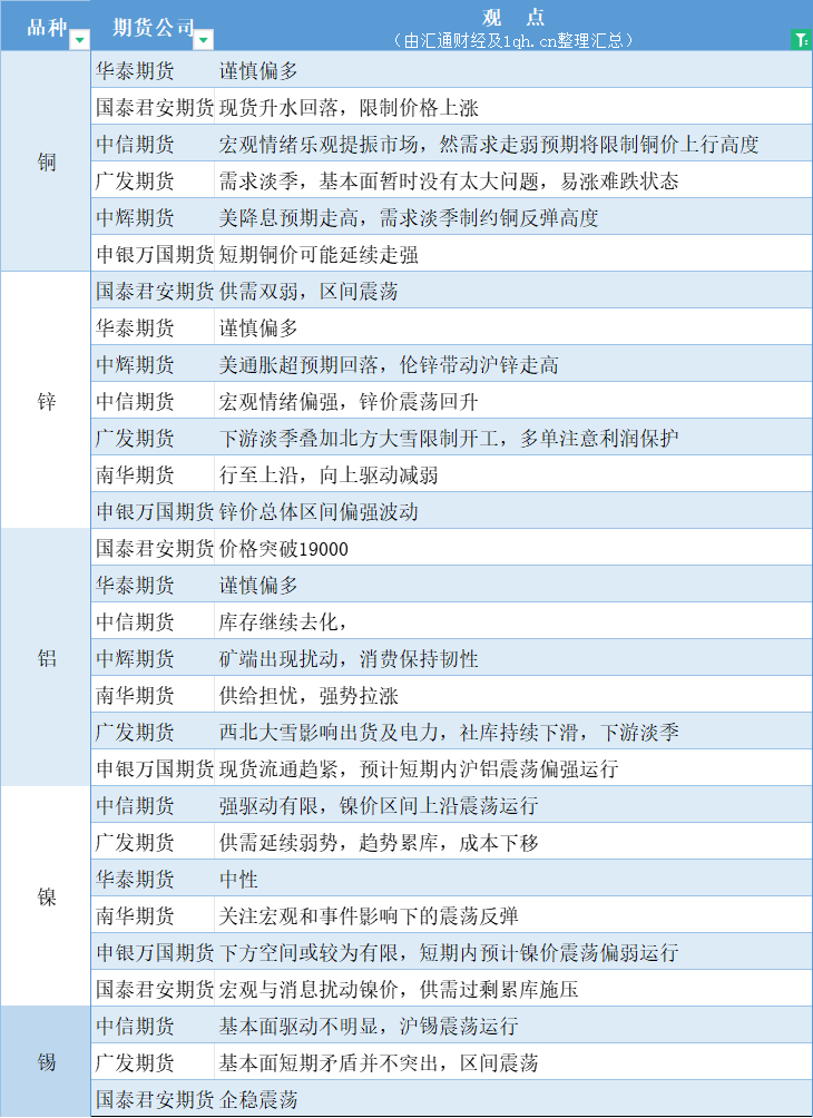 标题:期货公司观点汇总一张图:12月25日有色系(铜、锌、铝、镍、锡等)