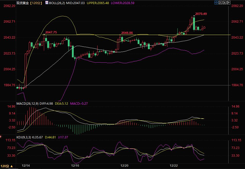 技术面来看,短线留意2047-2070区域的突破情况情况,前者是2小时布林线中轨等多重支撑,后者是近三周高点阻力。