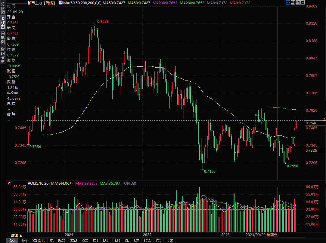 加元期货方面,加币主力周五收于0.7548,涨幅0.11%。周涨幅0.96%,为连续第二周上涨。