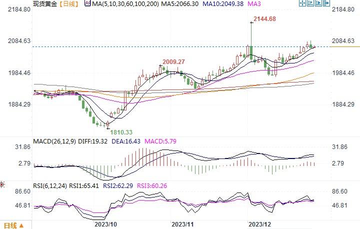 汇通财经APP讯——周四(12月28日),金价回落,稍早曾触及逾三周最高2088.29美元,尾盘下跌0.4%,收盘在每盎司2,069.79美元。当天美元和美国公债收益率探底回升催动了黄金一定程度的获利调整性下跌。