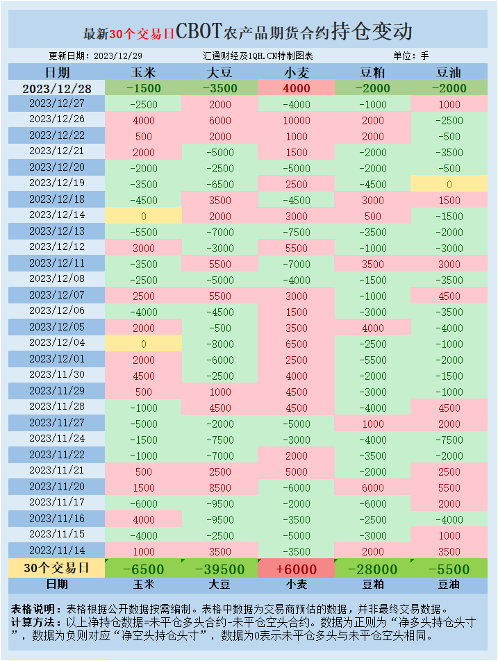 交易商估算的结果显示,本周四(12月28日),大宗商品基金增加小麦投机性净多头头寸,增加大豆、豆油、玉米、豆粕投机性净空头头寸。最新30个交易日,大宗商品基金增加豆油、豆粕、大豆、玉米投机性净空头头寸,增加小麦投机性净多头头寸。