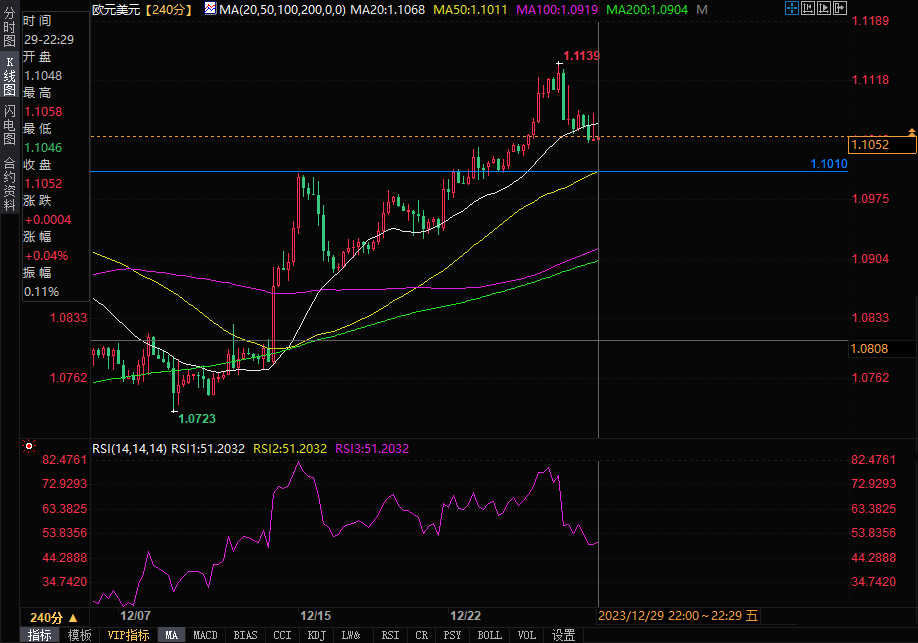 汇通财经APP讯——周五(12月29日),美盘时段,欧元/美元窄幅震荡,现报1.1056,跌幅0.04%。欧元主力报1.1091,跌幅0.08%。欧元周五小幅走低,主要是受到美元在节前时段温和反弹影响。