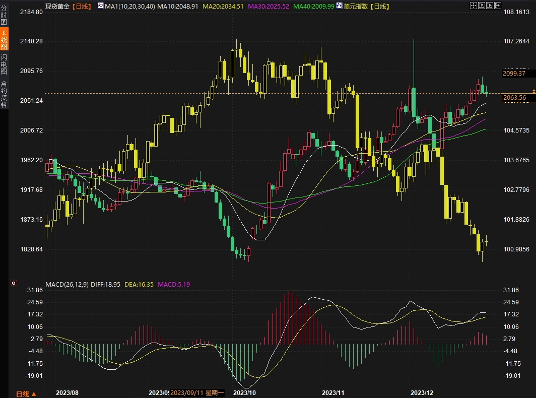 标题:2023收官日:美元全年下跌2.2%,黄金短暂跌破2060但仍录得3年最佳表现