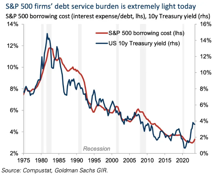由于这些活动,近一半的标准普尔500指数债券将在2030年之后到期,而利息支出在利率上升的情况下并没有真正变化。