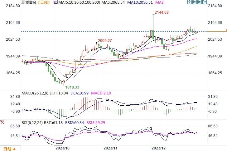 汇通财经APP讯——周二(1月2日),由于美元全面反弹,金价周二在2024年第一个交易日承压,当日微跌0.20%,收盘于2058.60美元,仍处于上年末创下的高点区域内。
