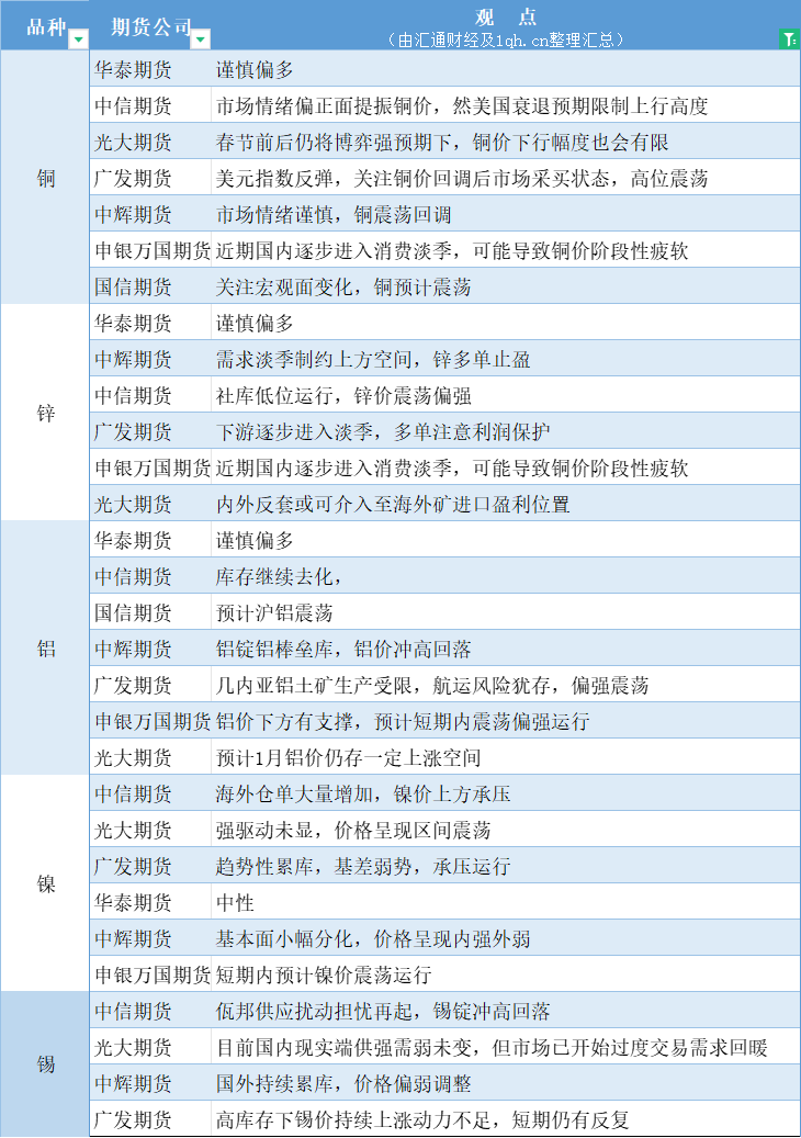 标题:期货公司观点汇总一张图:1月3日有色系(铜、锌、铝、镍、锡等)