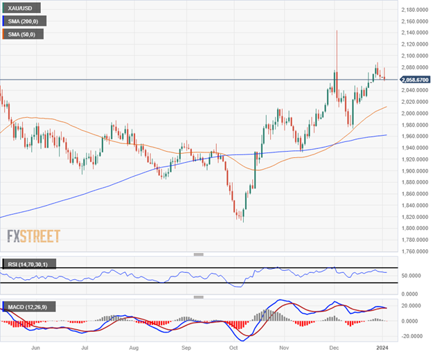 黄金技术面方面,FXStreet分析师Joshua Gibson指出,在日线图上,黄金仍处于高位,但底部正在打开,因为黄金投资者继续努力推动现货黄金重返去年12月初的涨势,当时金价触及2140美元/盎司附近的历史高点。