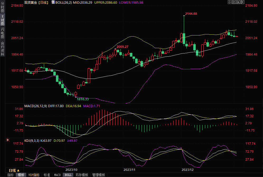 现货黄金结算价收跌0.19%,收报2058.86美元/盎司。