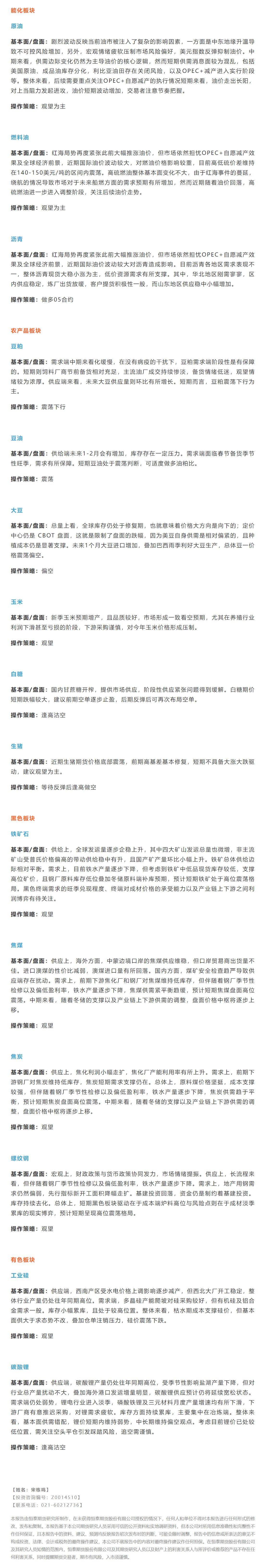 以下为恒泰期货1月5日对能源化工、黑色建材、有色金属、农产品板块期货交易提醒和建议。