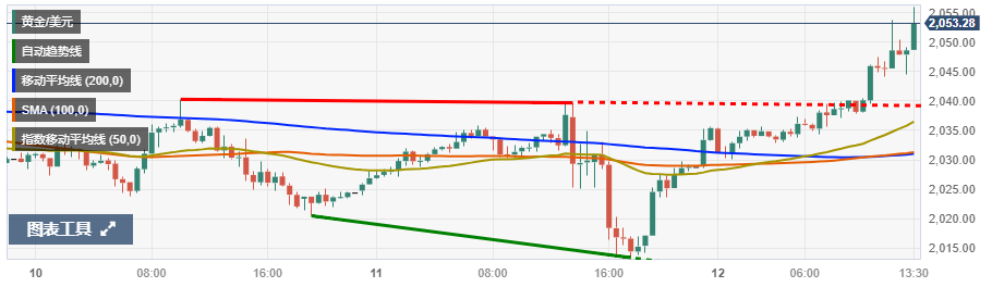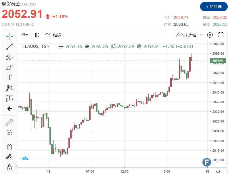 金价受益于中东紧张局势,并且从PPI中获得新的动力。数据发布后现货黄金短线走高近5美元,现报2052.91美元/盎司。