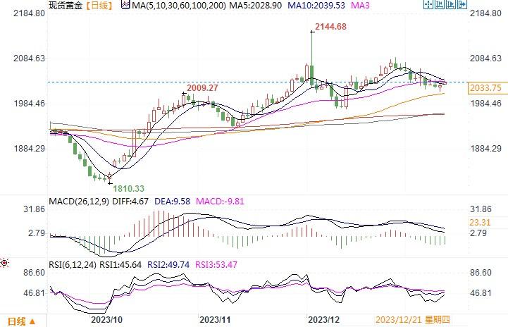 汇通财经APP讯——在美元疲软的推动下,金价在2023年最后一个月创下历史新高,但“高处不胜寒”的金价几次出现大跌,令技术面出现负面信号。