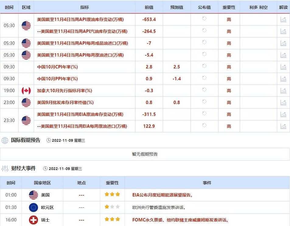③11月9日(周三)关键字:美国截至11月4日当周API和EIA原油库存变动,纽约联储主席威廉姆斯