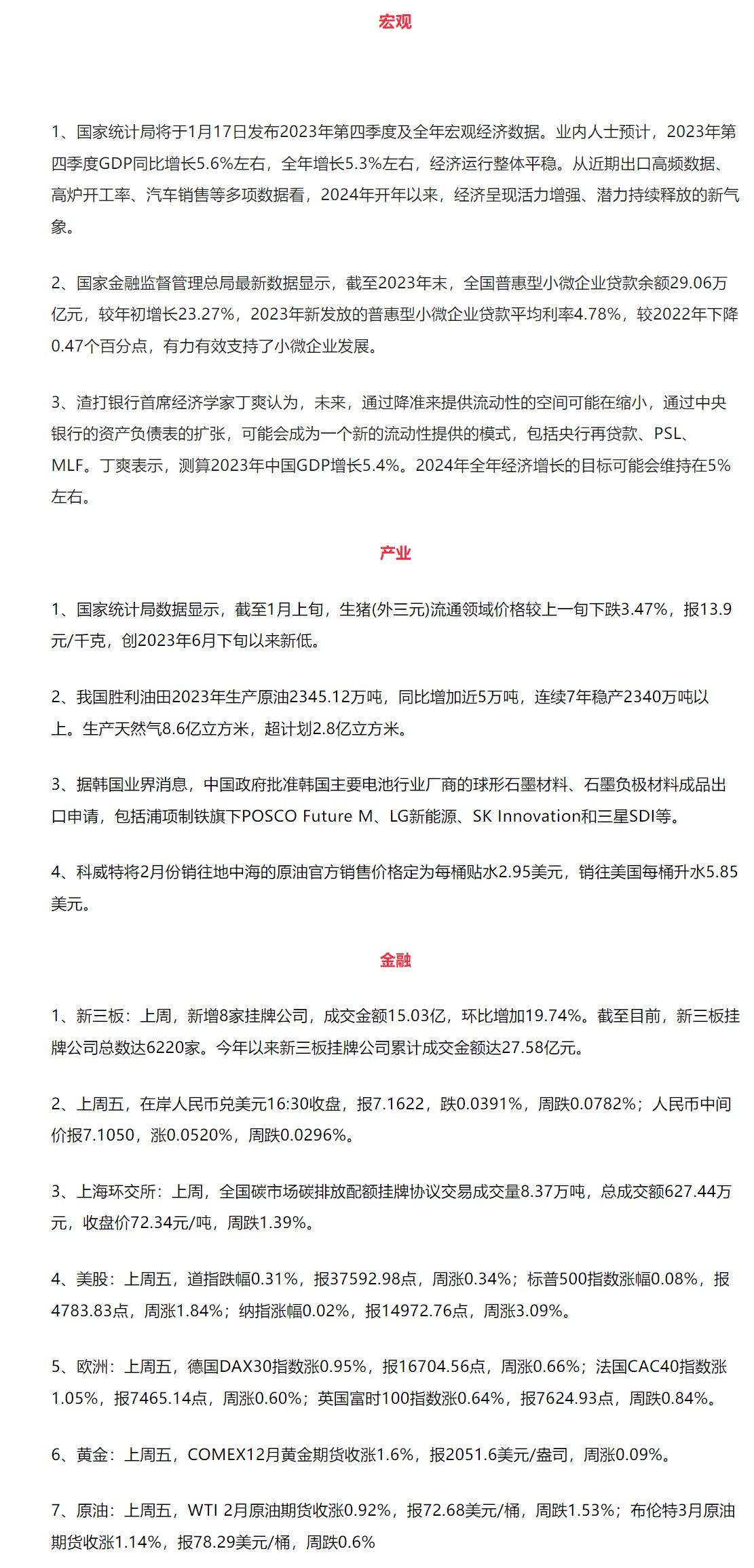 国债:2023年12月通胀及金融数据公布,服务价格边际改善,CPI环比转涨,但内外需继续拖累PPI走弱。社融仍然由政府债支撑,居民新增贷款企稳,企业新增融资连续数月同比少增。整体在低通胀格局延续和融资需求相对不足的背景下,后续货币政策加码的概率有望提高。另外,资金面可能受到短期因素的扰动,短端利率的下行幅度有限。在当前的基本面下,长端利率上行空间同样有限,后续还需继续关注降准降息是否落地,以及政策力度是否超预期。