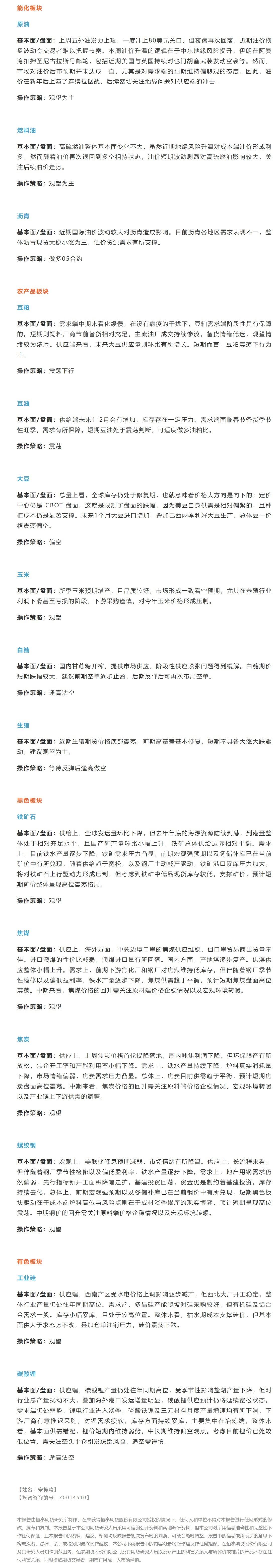 标题:恒泰期货1月15日早盘交易策略