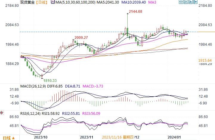 汇通财经APP讯——周一(1月15日)金价上涨0.2%,至每盎司2,052.10美元。中东紧张局势升级以及市场加大了对美联储最早将于3月降息的押注,使得黄金的投资吸引力逐步提升。但由于美国周一为马丁路德金纪念日假期,市场交投淡静,为此黄金波幅有限。